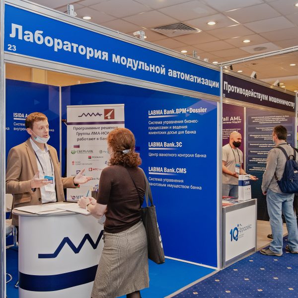 На стенде ЗАО «ЛМА» были представлены программные продукты Группы ЛМА-ИСИДА для банков, в том числе система управления бизнес-процессами и ведения клиентских досье для банка LABMA Bank.BPM+Dossier и архив финансово-бухгалтерских электронных документов банка LABMA Bank.FinArchive.
